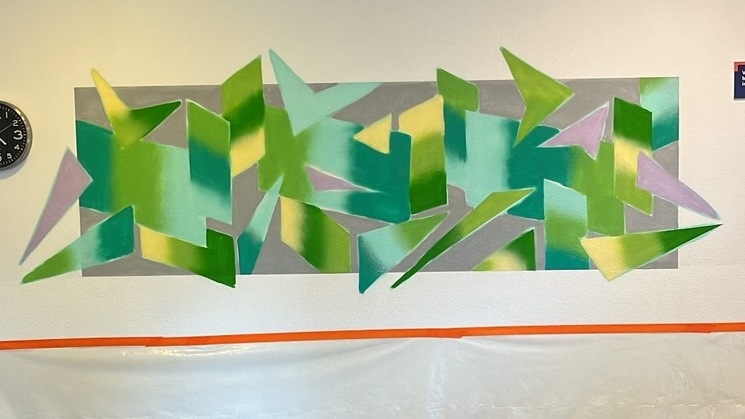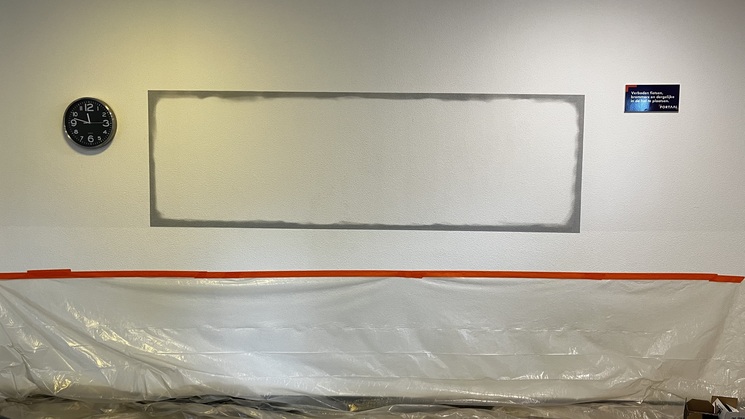 1e muurschildering in de centrale hal